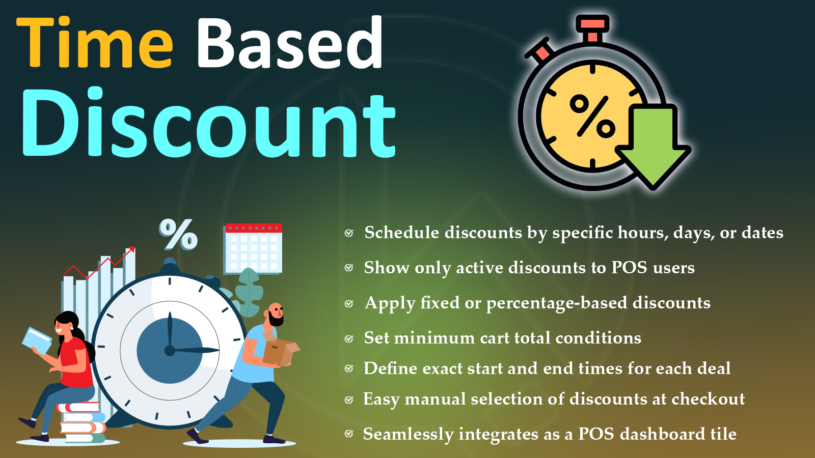 This app helps merchants run time-based promotions directly from their POS system. You can schedule discounts by hour, day, or date, and only active deals are shown to staff. Discounts can be fixed or percentage-based, with custom rules like minimum cart value. Staff can apply deals manually at checkout, improving accuracy and speed. The app integrates seamlessly into the POS dashboard and requires no coding or theme changes.