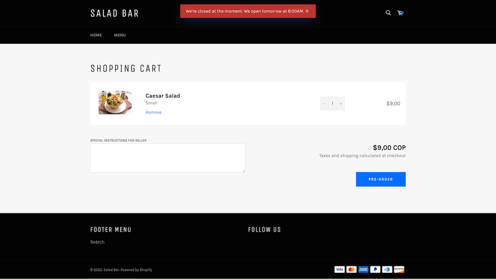 Your customers will know when you are open and be able to make new orders. Once you are closed, the ability to make new orders is disabled and a message is displayed to your customers. Avoid having a customer place an order while you are closed and unable to help them. Through our app, you can manage your store hours so that your customers know when they can order from you. You can also disable products at specific times. Great for businesses like restaurants, bakeries, and grocery stores.