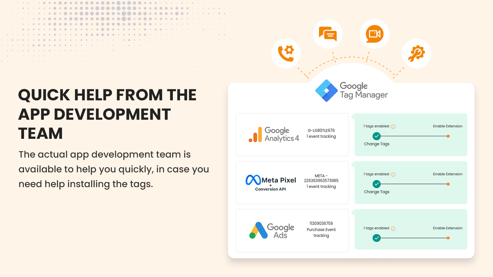 The GTM Assistant app is a fully automated app to install GA4, Google Ads, Meta pixel CAPI & Twitter on your shopify store. Just login with your Google account once and install google services like GA4 with just one click. Every service offers multiple events to configure. Store owners can choose the events to be configured. Give control of the data in the hands of your customers by enabling the consent mode. The app provides step by step instructions to configure any available services.