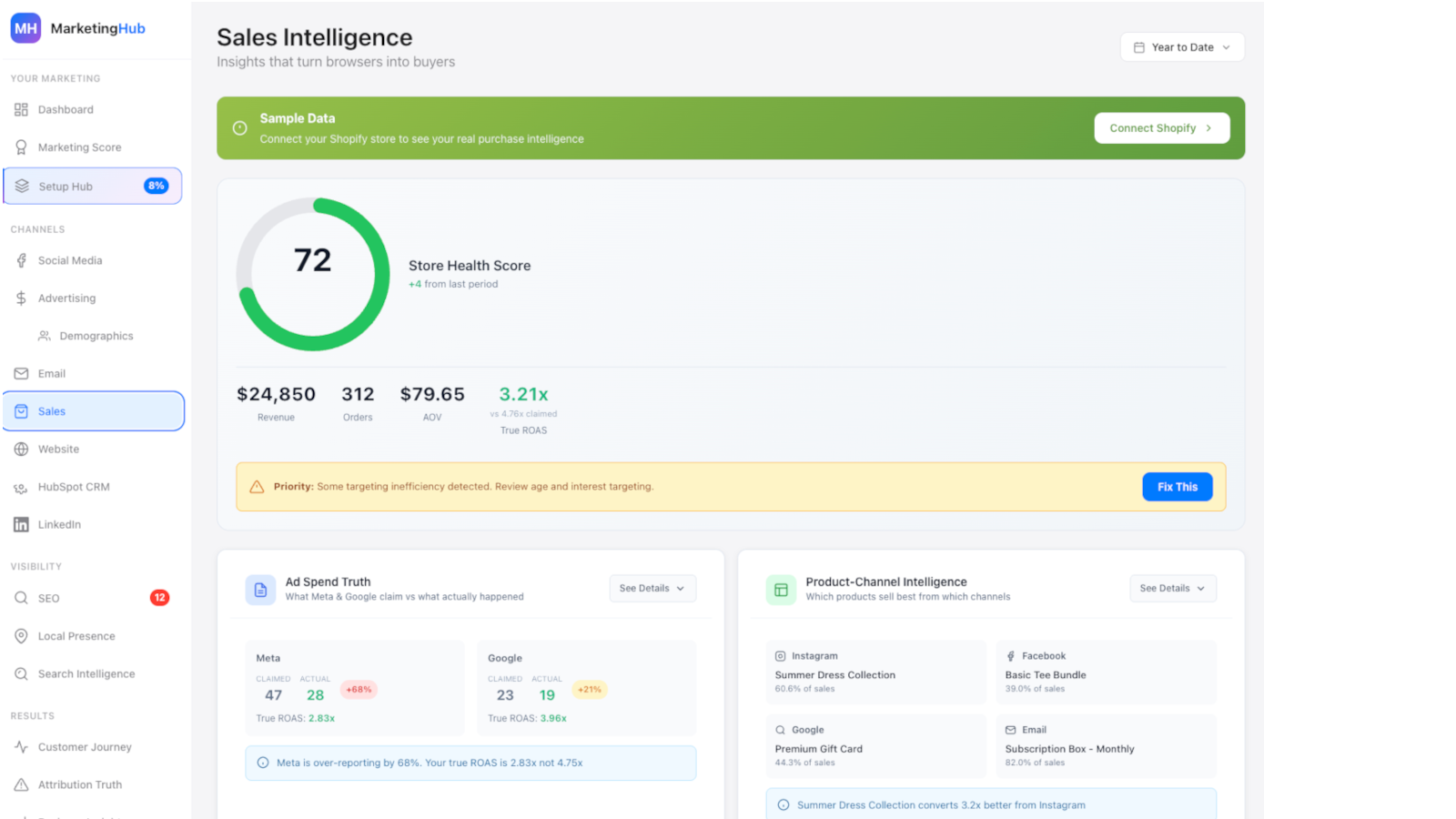 Well Media Agency Marketing gives Shopify merchants insights into which marketing activities are generating sales. We pull data from Meta, Google, TikTok, email providers, and your store into one place. Track follower growth, ad spend, email performance, and revenue side by side. See attribution the way it really happened, not how ad platforms want you to see it. Built for busy store owners who need answers. Connect once, get insights daily.