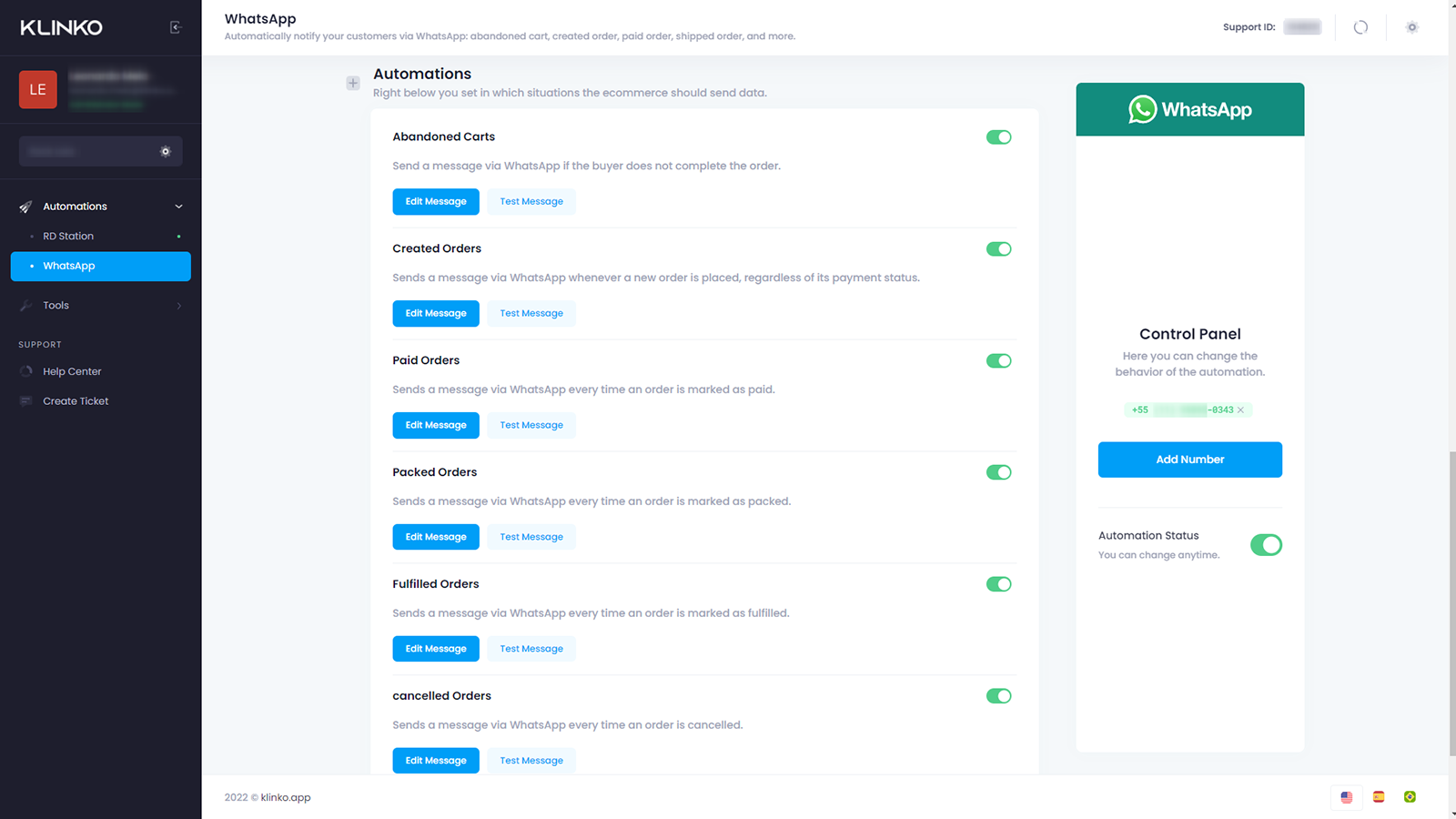 Enhance your sales with Smart Automated Messages via WhatsApp! Strengthen connections and improve conversions by sending key events from your e-commerce store directly to your customer's WhatsApp. Activation is quick and easy. Send unlimited messages, utilize your own WhatsApp number, and personalize messages according to your preferences. Connect your store to Klinko, scan the QR code, select the events you wish to activate, and you're good to go! Elevate your sales now!