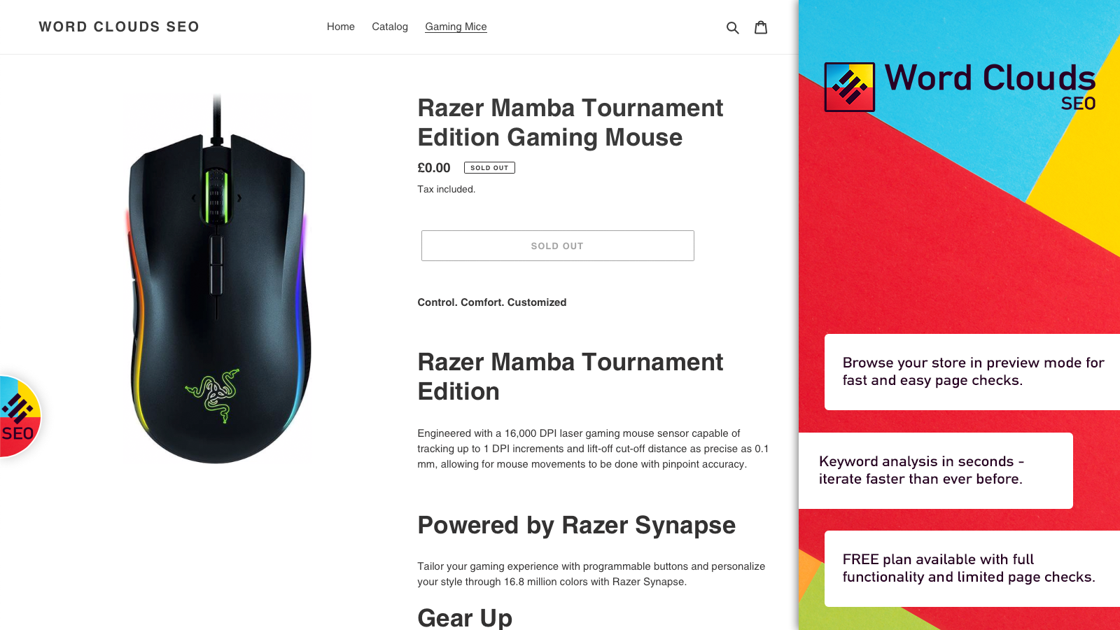 Use Word Clouds SEO to analyse your page content in a simple way which lets you visualise in seconds how weighted your content is towards your target keywords. View a word cloud of your page content where most commonly used words appear bigger, as well as seeing a table which ranks your keywords according to their usage. You'll quickly discover whether or not your page content is aligned with you keyword goals.