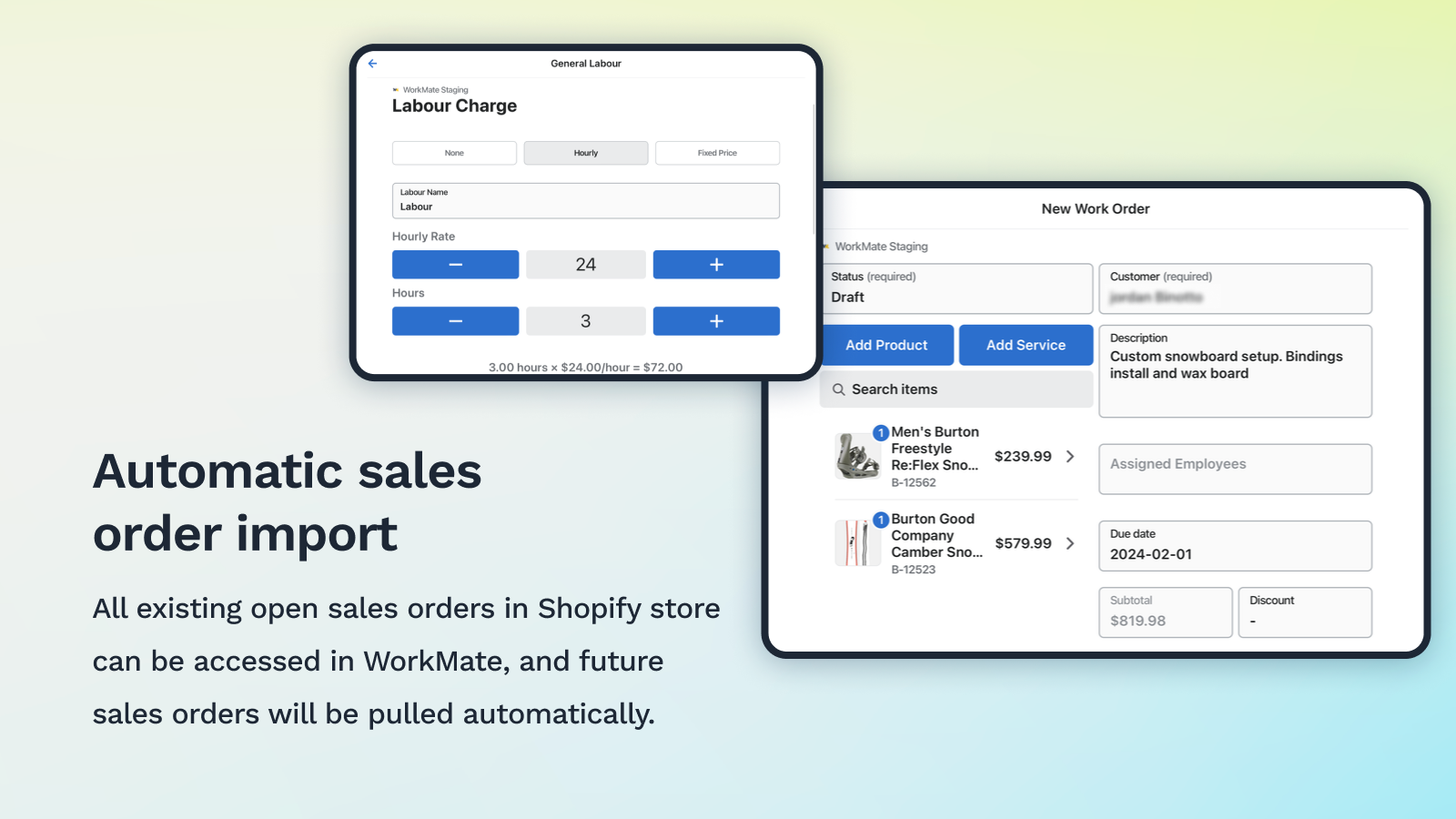 WorkMate allows you to perform various functions seamlessly within your Shopify Point of Sale system. With WorkMate, you can effortlessly create work orders, manage vendors, and track incoming inventory. Easily generate dropship purchase or work orders for each store order and location, track all related sales orders, purchase orders and invoice numbers. Additionally, you can send the work / purchase orders you create directly to your suppliers via email, and receive inventory.