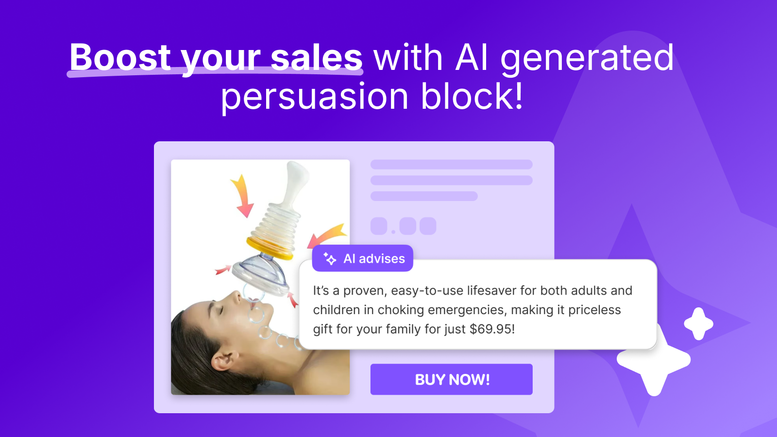 Creates human-like AI-generated product page block, to persuade your customers to buy.