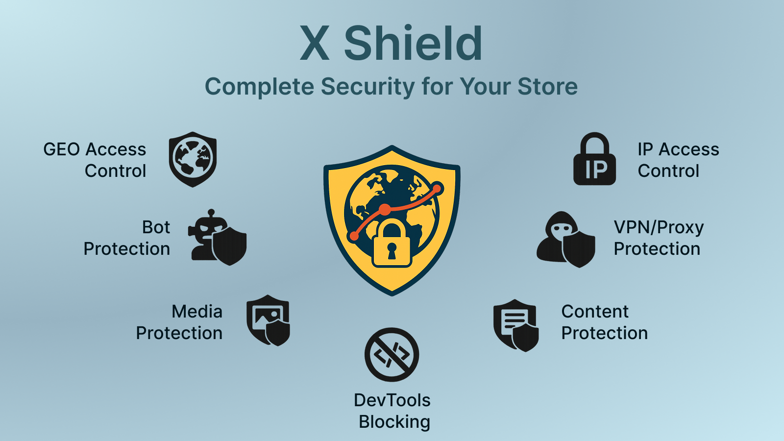 Protects store from theft and fraud. Blocks spy tools, bots, dev tools and GEO/IP access control.