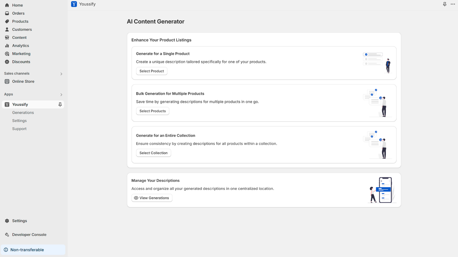 Transform your product descriptions with AI-powered copywriting that saves time and drives sales. Our app analyzes your products and generates engaging, SEO-optimized descriptions that highlight key features and benefits. With one-click generation and easy customization options, you can create compelling product content in seconds. Perfect for stores with many products or merchants looking to improve their product storytelling.