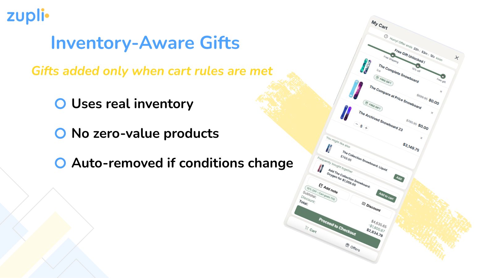 Zupli adds a slide cart to run upsells, gifts, and rewards using real inventory.