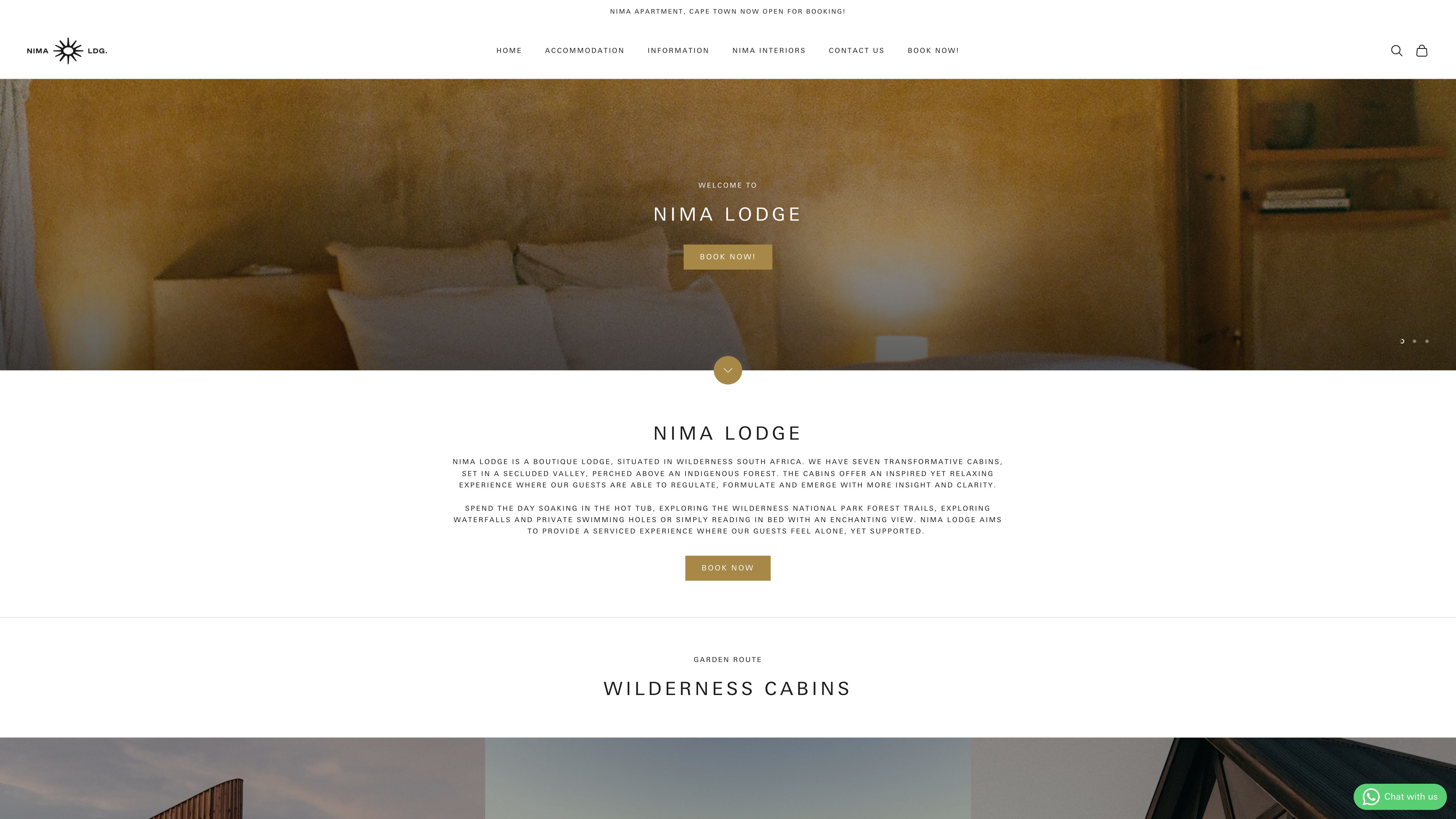 Nima Lodge is a stylish and secluded getaway set amidst the beauty of nature. Experience the tranquility of the Nima Lodge wilderness, a premium and sophisticated retreat. Enjoy unique features such as wood-fired hot tubs, wilderness picnics, waterfall hikes, and a cozy fire and braai pit.